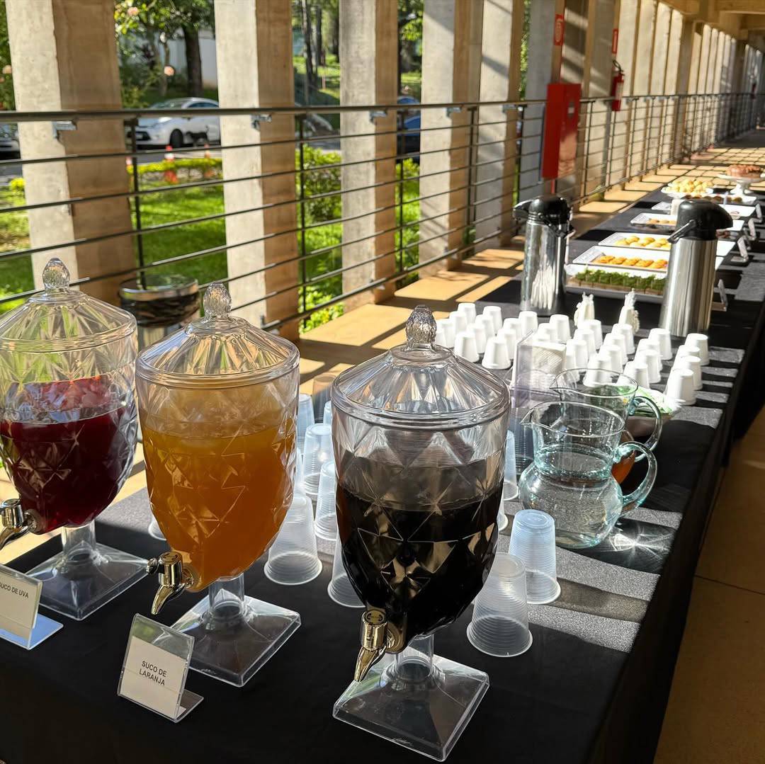 Perfeito para reuniões corporativas ou eventos casuais, oferecemos cafés selecionados, salgadinhos e refrigerantes para um intervalo delicioso.